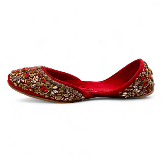 Red juttis radiate charm and elegance, making them ideal for both grand celebrations and everyday glamour. Pair them with traditional attire for weddings, festivals, and cultural gatherings, or style them with modern outfits for a striking contrast. Whether you’re dressing for a formal event or adding a pop of color to a casual look, red juttis command attention with effortless grace.