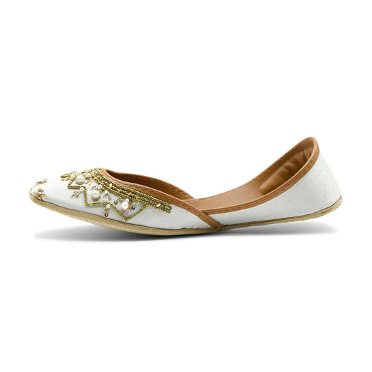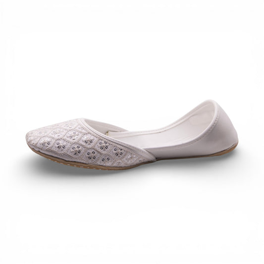 Step into refined elegance with white juttis. From crisp ivory to soft pearl hues, each pair embodies effortless grace.
