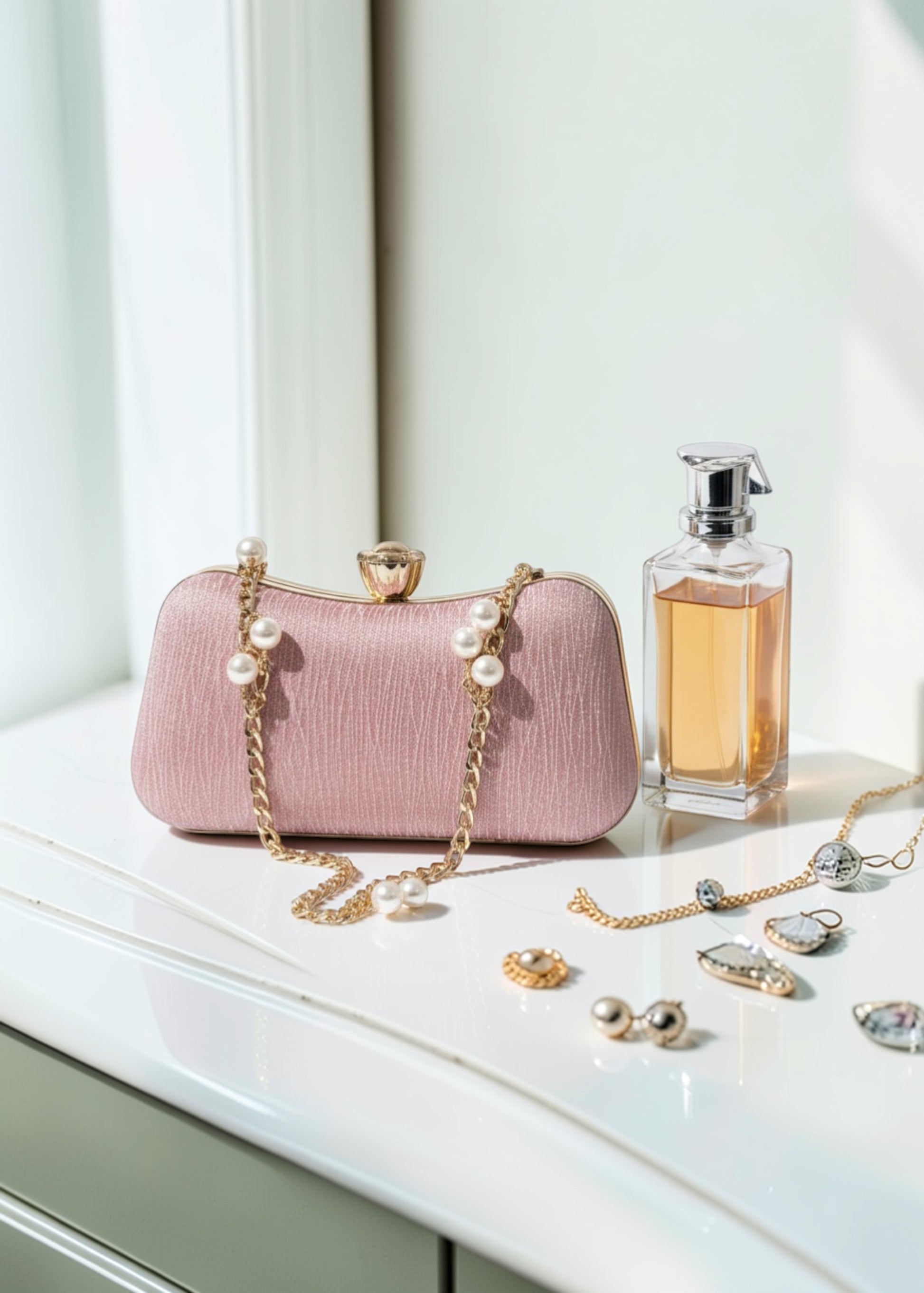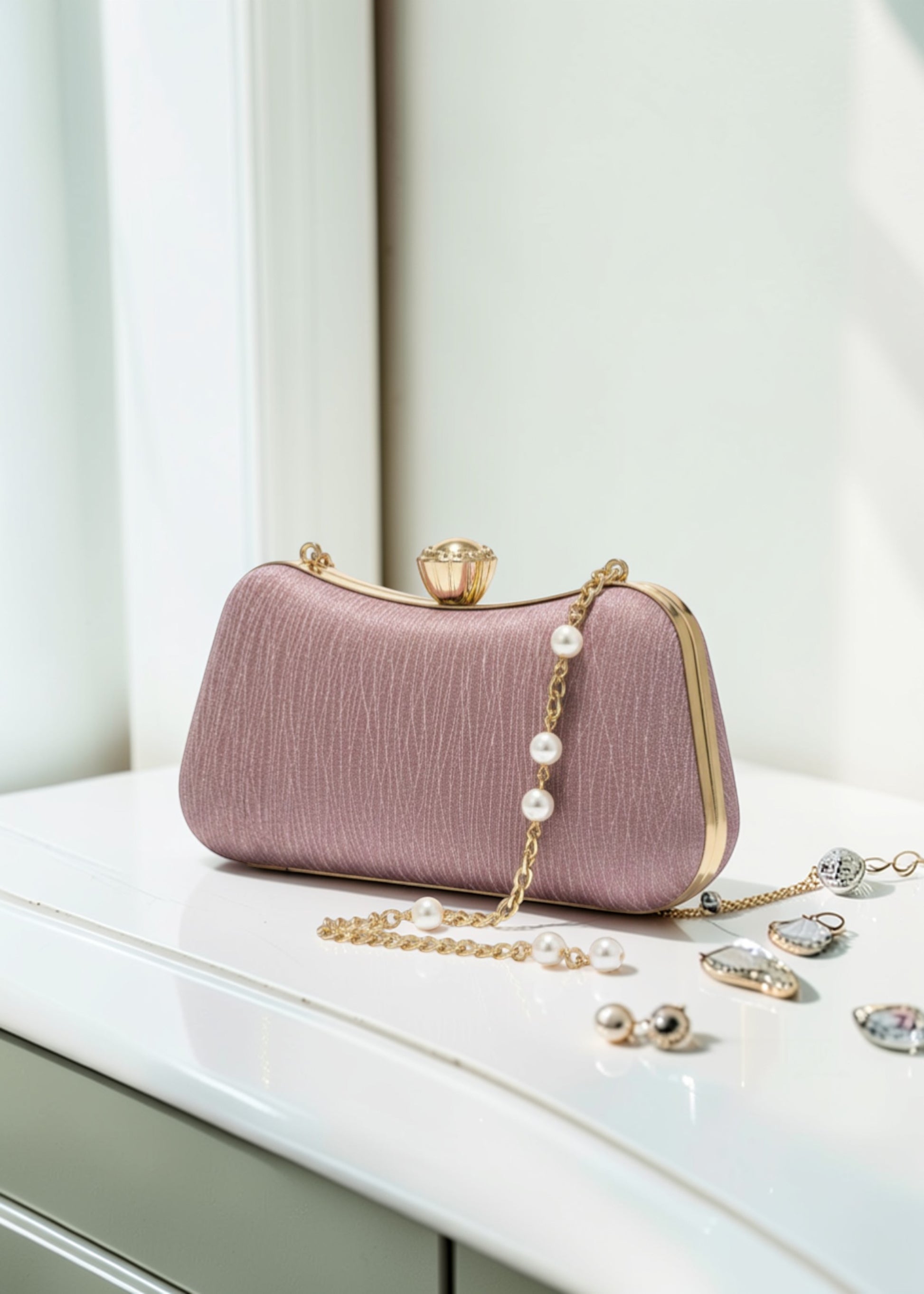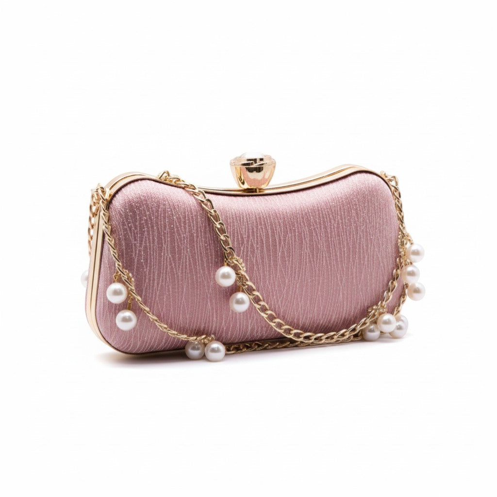 Elegant, timeless, and effortlessly graceful. This blush pink clutch is crafted with a luxurious satin finish and finished with delicate pearl chain detailing. Designed to complement your festive and formal looks, it adds just the right touch of sophistication to your special moments.